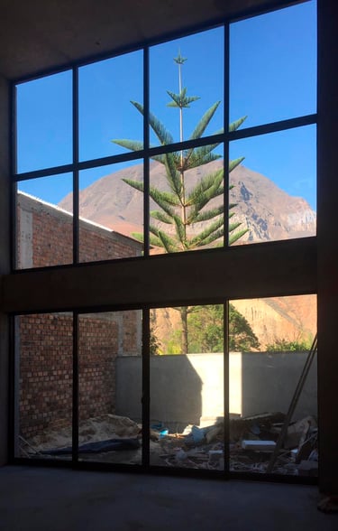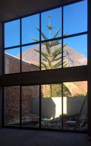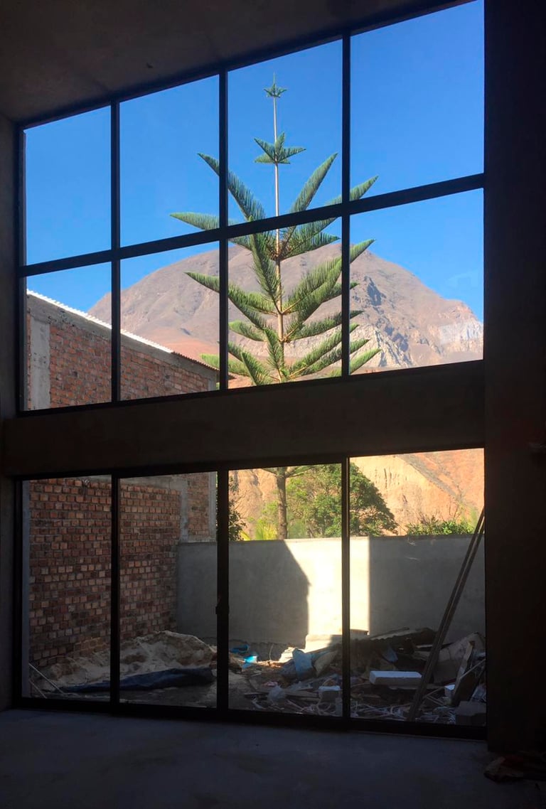 Vivienda temporal ubicada a dos horas de la ciudad de Cajamarca, edificada sobre un lote de forma irregular, con frente hacia una plaza pública y una visual posterior abierta al paisaje natural, dominado por la presencia de un cerro.